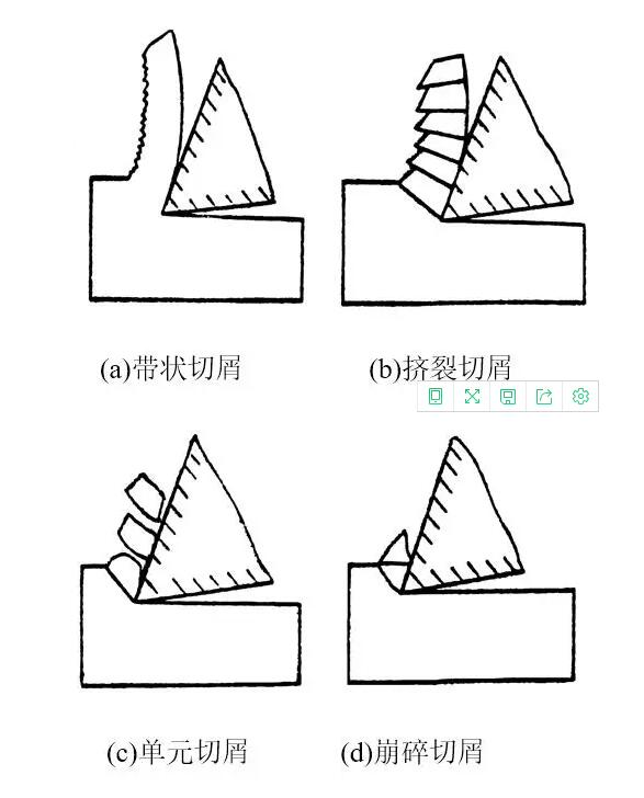 又稱單元切屑。在切屑形成過程中,如剪切面上的剪切應(yīng)力超過了材料的斷裂強度,裂紋擴展到整個面上,切屑單元從被切材料上脫落,形成粒狀切屑。如圖c所示。