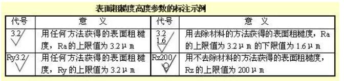 GB/T 131-1993規定了表面粗糙度代號及其注法。圖樣上表示零件表面粗糙度的符號見下表。