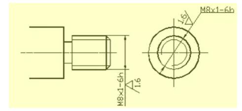 齒輪、螺紋等工作表面沒有畫出齒(牙)形時,其表面粗糙度代(符)號注法見圖。
