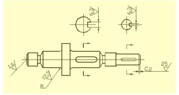 中心孔的工作表面,鍵槽的工作表面,倒角,圓角的表面粗糙度代號可以簡化標注。