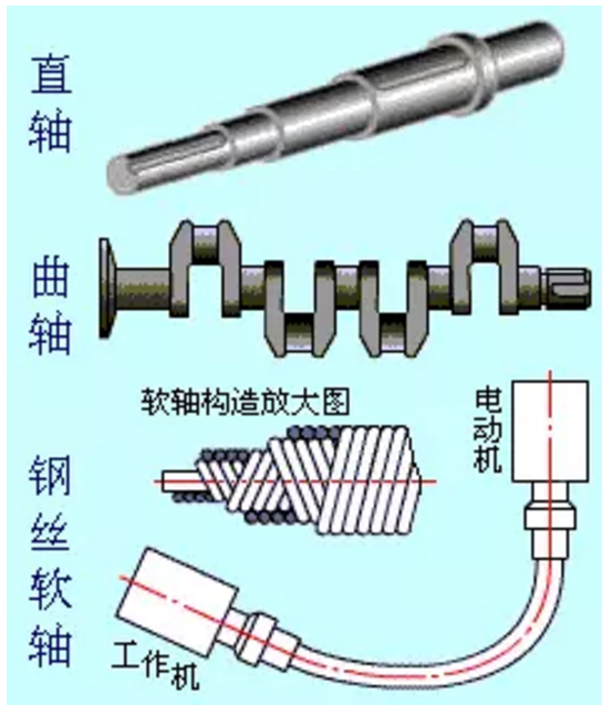 軸的類型很多,按軸線形狀不同可分為直軸、曲軸和撓性軸。曲軸常用于往復式機械(如內燃機、空氣壓縮機等)中,撓性軸可將旋轉運動靈活地傳到所需要的位置,常用于醫療設備中,我們在文章中只討論直軸。