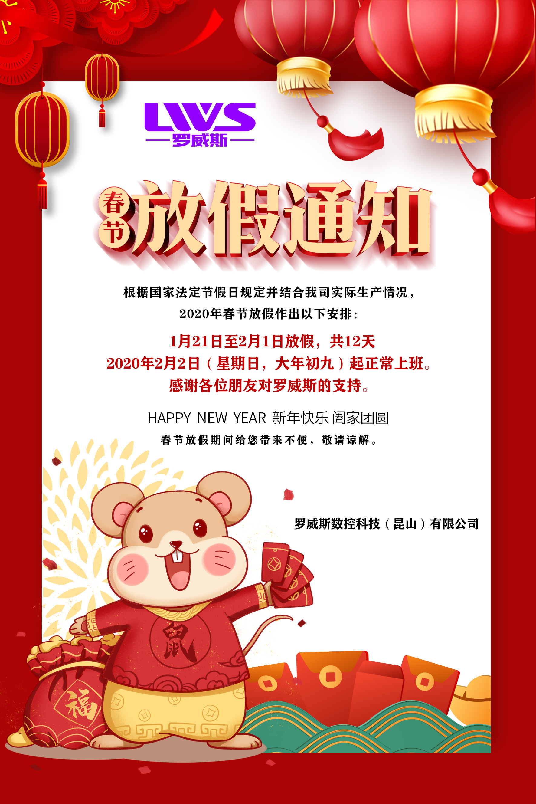 春節放假通知