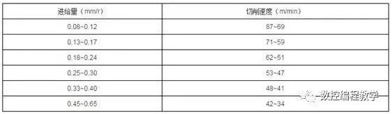 注:本表使用條件:刀具材料YG8,工件材料TC4,刀具幾何角度前角=5°,后角=10°,主偏角=75°,副偏角=15°,刀尖半徑=0.5mm,切削深度=1mm,干式切削。若使用切削液,表中切削速度可適當(dāng)提高。