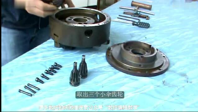 首先在背面找到幾個(內(nèi)六角)螺釘,拆下,然后用木棒或銅棒從前邊向后錘擊三爪里邊的那個圓盤,就能拿出那個圓盤了。里邊是一個定位和防塵等作用的小圓盤,拆下。拆除后再在卡盤的三個爪的后邊對應位置找到幾個平口改錐口的螺絲,卸下,這樣就能把擰三爪的那錐齒輪取出,然后小心的把帶平面矩形螺紋的那個盤拿出,從前邊把三個爪取下,這樣三爪就拆卸完成了。