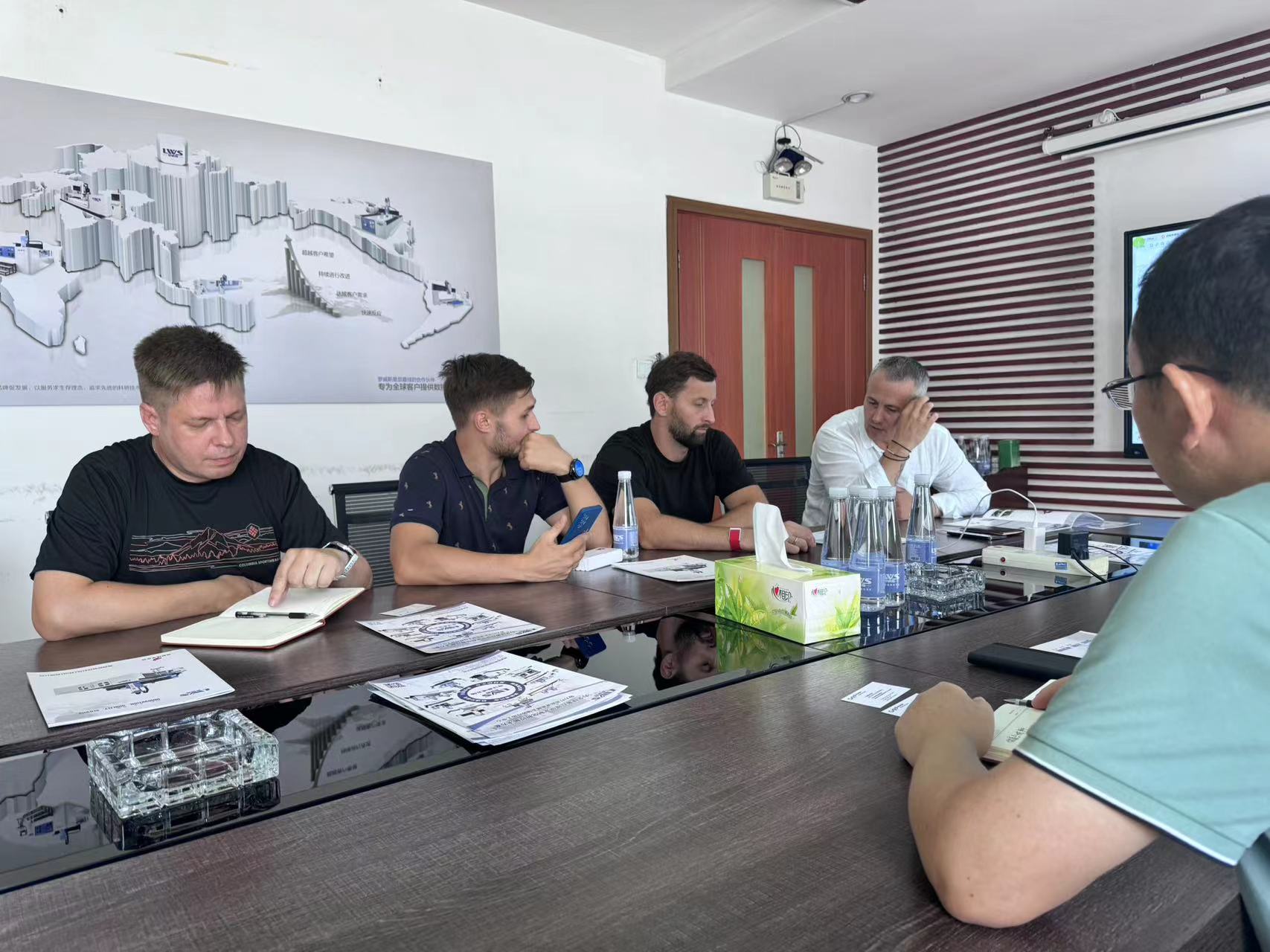 在此次國際交流合作會議上,總經理向客戶詳細介紹了公司的產品信息、技術實力、售后服務體系、相關合作案例等,并展示了公司近幾年來所取得的一系列成績案例和榮譽。 客戶們對我們的管理模式和創新的技術研發成果也表現出了濃厚的興趣。